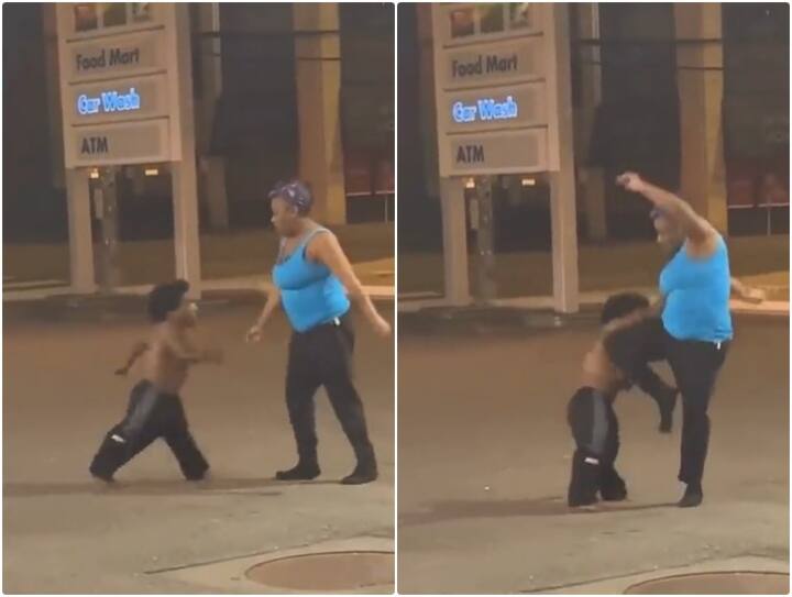 वायरल हो रही वीडियो को सोशल मीडिया पर @Extremelol_ नाम के ट्विटर अकाउंट से पोस्ट किया गया है. इस वीडियो में शरीर से बौने शख्स को काली रंग की पैंट पहने महिला से हाथापाई करते देखा जा रहा है. वीडियो में शख्स को महिला पर एक साथ कई पंच मारते देखा जा रहा है. शख्स के जोरदार पंच लगने के बाद महिला दर्द से कराहने के बजाए उस पर हमला करते हुए टूट पड़ती है.