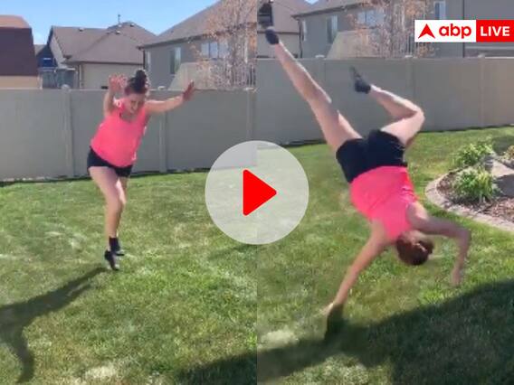 वायरल वीडियो में आप पिंक टी-शर्ट में एक महिला को देखेंगे. महिला अपने घर के गार्डन में ही फ्लिप मारने की कोशिश करती है, लेकिन इसमें महिला को सफलता नहीं मिलती और वो बुरी तरह से गिरती है. गिरने के दौरान महिला के हाथ भी मुड़ जाते हैं. वहीं पालतू कुत्ता इधर-उधर उछलने लगता है.