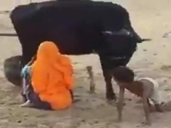 वहीं इस महिला ने जो जुगाड़ गाय का दूध निकालने के लिए किया वो शायद ही आपने ही पहले कभी देखा या सुना होगा. वायरल हो रहे वीडियो में आप देख सकते हैं कि एक महिला गाय का दूध निकाल रही होती है. इसके लिए वह बच्चे को गाय के बछड़े की तरह से ही बैठा देती है और गाय भी उस बच्चे को अपना बछड़ा समझकर उसे चाटने लगती है. इसी दौरान महिला भी आराम से दूध निकाले जा रही है. सोशल मीडिया यूजर्स को दूध निकालने का यह देसी नुस्खा काफी पसंद आ रहा है.