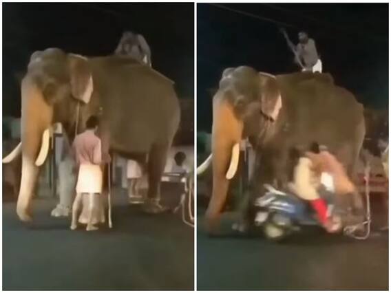 सोशल मीडिया पर सामने आए इस वीडियो में एक शख्स हाथी के पास खड़ा दिखाई दे रहा है. तभी अचानक पीछे से एक महिला स्कूटी पर सवार होकर तेजी से आते हुए उस शख्स को टक्कर मार देती है. बताया जा रहा है कि बैलेंस खोने के कारण यह टक्कर हुई है. फिलहाल जोरदार टक्कर के कारण शख्स को बुरी तरह घायल होते देखा जा सकता है.