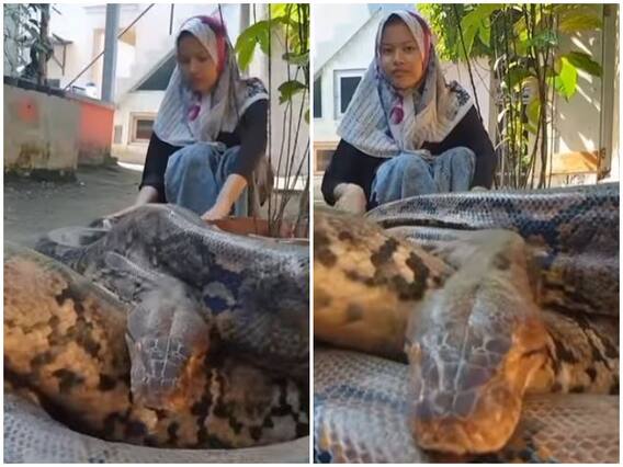 वीडियो में देखा जा सकता है कि अजगर काफी लंबा और काफी मोटा भी है. कोई भी इसे देखे तो डर जाए. हालांकि वीडियो में दिखता है कि एक लड़की इस अजगर के पास बैठी हुई है. इतना ही नहीं, लड़की अजगर को सहला रही होती है और हाथ हिलाकर मुस्कुराती भी है.