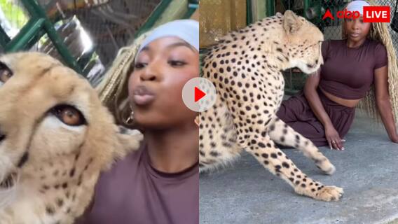 सोशल मीडिया पर वायरल एक खतरनाक वीडियो में जंगली चीते को अपने पिंजरे के प्रांगण में लेट कर आराम फरमाते हुए देखा जा सकता है. इस दौरान उसके पास एक महिला आती है और बैठकर चीते को सहलाते हुए अपनी वीडियो बनवाने लगती है. कुछ देर तक तो सब ठीक चलता है लेकिन अगले ही पल चीता सुस्ताने के लिए जैसे ही खड़ा होता है वैसे ही महिला के प्राण गले को आ जाते हैं और वो सोचती है कि आज तो अपन गए. लेकिन चीता अंगड़ाई लेने के बाद वापस करवट लेकर लेट जाता है, जिसके बाद महिला की जान में जान आती है.