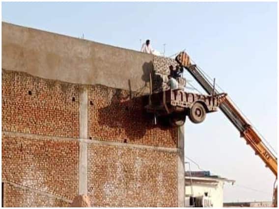 एक फोटो सोशल मीडिया पर वायरल हो रही है. इस फोटो में आप देख सकते हैं कि मजदूर एक घर की दीवार पर प्लास्टर करने के लिए ट्रैक्टर की ट्रॉली को क्रेन से लटका देते हैं और उस ट्रॉली पर खड़े होकर दीवार पर प्लास्टर करते हैं. आपने घर बनाने के दौरान कई तरह के जुगाड़ देखे होंगे. घर बनाते समय सबसे ज्यादा मुश्किल और मेहनत का काम मजदूर करते हैं.
