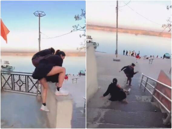 वीडियो को ट्विटर पर सोनम गुप्ता नाम की एक प्रोफाइल से पोस्ट किया गया है. इस वीडियो में एक युवक और युवती वीडियो बनवाते हुए स्टंट परफॉर्म करते नजर आते हैं. इस दौरान वह विदेशों में की जाने वाली पार्कर टेक्नीक को करने की कोशिश करते हैं. फिलहाल दीवाल को पार करने के बाद जैसे ही वह सीढ़ियों पर उतरते हैं तो उस पर पानी गिरे होने के कारण युवती खुद को संभाल नहीं पाती और स्लिप हो जाती है.