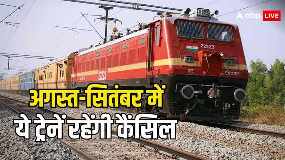 Train Cancelled: अगर आप अगस्त और सितंबर के महीने में ट्रेन से सफर करने के बारे में सोच रहे हैं. तो फिर आपको पहले यह खबर पढ़ लेनी चाहिए. भारतीय रेलवे ने अगस्त और सितंबर के महीने में कुल 52 ट्रेनें कैंसिल की हैं. अगर आप भी अगस्त के आखिरी सप्ताह में या फिर सितंबर के महीने में ट्रेन से सफर की प्लानिंग कर रहे हैं.