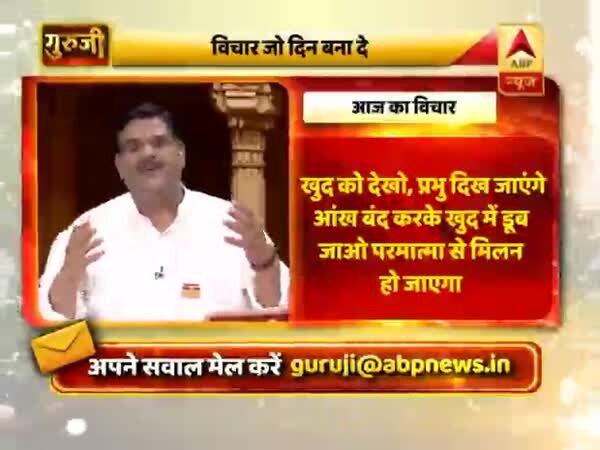 गुरुजी पवन सिन्हा बता रहे हैं आज का अनमोल विचार जो आपकी जिंदगी में ला सकता है बहुत बड़ा बदलाव, बस जरूरत है तो इस विचार को अपनी जिंदगी में उतारने की. क्योंकि एक सकारात्मक सोच के साथ ही आपकी जिंदगी खुशहाल हो सकती है. श्रीगुरु पवन सिन्हा जो विचार बताते हैं उससे आपके जीवन को एक नया आयाम मिलेगा और साथ ही आप हमेशा लोगों की नजरों में अच्छे बने रहेंगे. आज का विचार- खुद को देखो, प्रभु दिख जाएंगे. आंख बंद करके खुद में डूब जाओं परमात्मा से मिलन हो जाएगा.