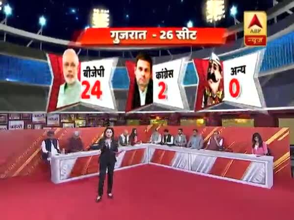 23 मई को चुनावी नतीजे आने के साथ ही नई सरकार के गठन का रास्ता साफ हो जाएगा. केंद्र में काबिज मोदी सरकार की फिर वापसी होगी या विपक्ष और महागठबंधन की एकता रंग लाएगी इसका फैसला 23 मई को हो जाएगा. इससे पहले आज एबीपी न्यूज-नीलसन के एग्जिट पोल के जरिए आपके सामने नतीजों का अनुमान पेश किया जा रहा है. प्रधानमंत्री मोदी के गृह राज्य गुजरात से बीजेपी के लिए बड़ी खबर आई है. यहां 2014 के चुनाव में बीजेपी को सभी 26 सीटों पर जीत मिली थी तो इस बार पार्टी को 24 सीटों पर जीत मिलती दिख रही है. इसके अलावा कांग्रेस को 2 सीटों पर जीत मिलती दिख रही है.