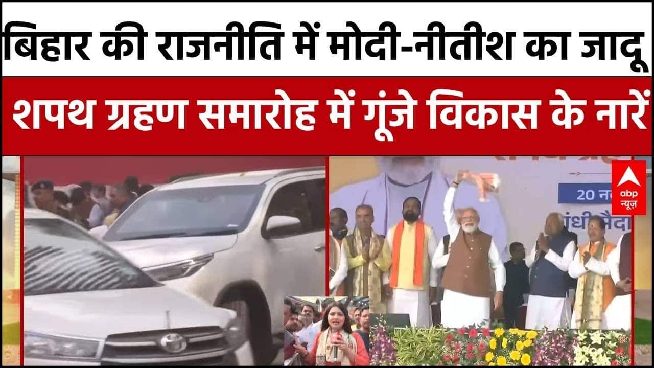 Bihar CM Oath: बिहार की राजनीति में मोदी-नीतीश का जादू, शपथ ग्रहण समारोह में गूंजे विकास के नारें