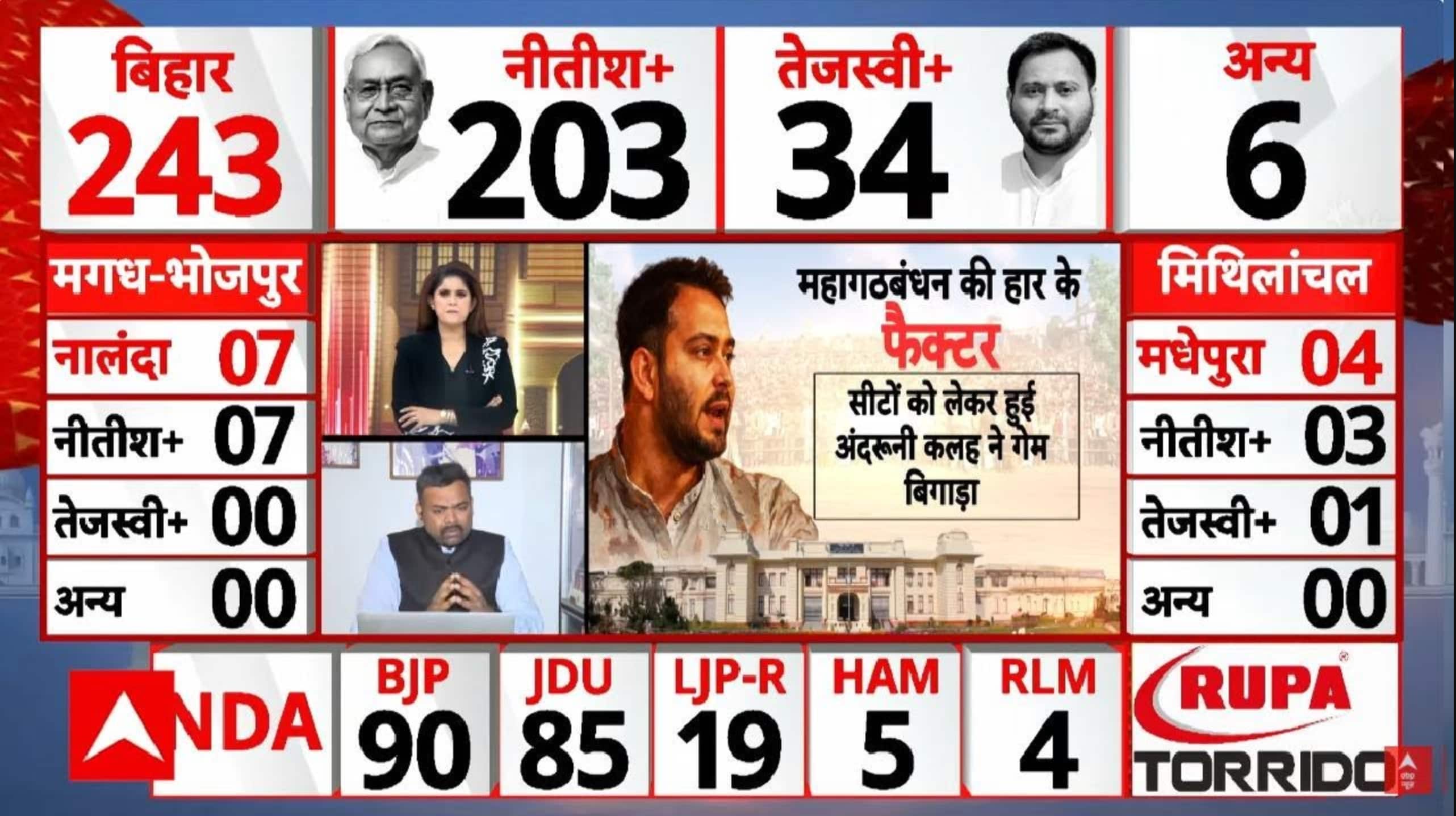 बिहार में एनडीए प्रचंड बहुमत की ओर बढ़ रही है. इस चुनाव में भारतीय जनता पार्टी (बीजेपी) सबसे बड़ी पार्टी बनकर उभरी है. दिल्ली में बीजेपी मुख्यालय से कार्यकर्ताओं को संबोधित करते हुए प्रधानमंत्री नरेंद्र मोदी ने जय छठी मैया से अपने संबोधन की शुरूआत की. पीएम मोदी ने कहा कि बिहार के लोगों ने गर्दा उड़ा दिया. बिहार के नतीजों पर पीएम मोदी ने कहा, "ये प्रचंड जीत, ये अटूट विश्वास... बिहार के लोगों ने गर्दा उड़ा दिया. हम NDA के लोग, हम तो जनता जनार्दन के सेवक हैं. हम अपनी मेहनत से जनता का दिल खुश करते रहते हैं और हम तो जनता जनार्दन का दिल चुरा कर बैठे हुए हैं, इसलिए आज बिहार ने बता दिया है कि फिर एक बाद NDA सरकार." पीएम मोदी ने कहा, "बिहार के लोगों ने विकसित बिहार के लिए मतदान किया है. बिहार के लोगों ने समृद्ध बिहार के लिए मतदान किया है. मैंने चुनाव प्रचार के दौरान, बिहार की जनता से रिकॉर्ड वोटिंग का आग्रह किया था और बिहार के लोगों ने सारे रिकॉर्ड तोड़ दिए. मैंने बिहार के लोगों से एनडीए को प्रचंड विजय दिलाने का आग्रह किया था, बिहार की जनता ने मेरा ये आग्रह भी माना."