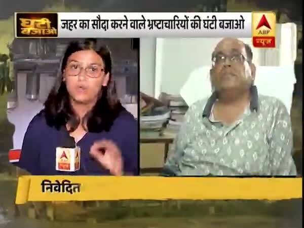 खबर रोकने के लिए एबीपी न्यूज रिपोर्टर को रिश्वत की पेशकश करने वाले बेनकाब. पश्चिमी चंपारण की एक शुगर मिल के जहरीले पानी से फसल हुई बर्बाद. एबीपी न्यूज़ संवाददाता जब बिहार के पश्चिमी चंपारण में आने वाले नरकटियागंज में जब एक रिपोर्ट को तैयार करने पहुंचीं. तो उनको डराने की कोशिश हुई. घेरकर धमकी देने का प्रयास हुआ. लालच देते हुए प्रसाद समझकर पैसों का लिफाफा आगे किया गया. ताकि नरकटियागंज में जिस चीनी मिल पर किसानों की जिंदगी बर्बाद कर देने का आरोप है...वो खबर सरकारी सिस्टम की मिलीभगत के कारण जैसे दबी हुई है उसी तरह दबी ही रहे. आज एबीपी न्यूज ने उस अधिकारी का चेहरा बेनकाब किया जिसने लालच देकर खबर दबानी चाही साथ ही उस गुर्गे का चेहरा दिखाया, जो खबर दबाने के लिए धमकी देने का आरोपी है. सरकारी मिलीभगत को उजागर करती हमारी ये विशेष रिपोर्ट देखिए