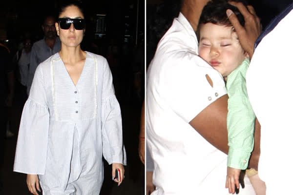 शूटिंग पूरी कर मुंबई लौटीं करीना कपूर, एयरपोर्ट पर सोते नज़र आए तैमूर अली खान