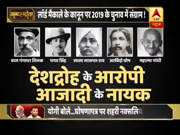 भारत में अग्रेजी की पढ़ाई की शुरूआत करने वाले Thomas Babington Macaulay यानी लॉर्ड मैकाले हैं लेकिन क्या आप जानते हैं कि भारत में देशद्रोह का कानून लाने वाले भी यही लॉर्ड मैकाले हैं. आश्चर्य की बात है कि 1837 में लॉर्ड मैकाले का ड्राफ्ट किया हुआ यही कानून 2019 में भारत में चुनाव का मुद्दा बना हुआ है. कल राहुल गांधी ने इसी देशद्रोह के कानून को खत्म करने का वादा किया और आज बीजेपी ने इसी वादे को मुद्दा बना लिया. आप भी सोचते होंगे कि आखिरी देश से गद्दारी करने वालों को कांग्रेस क्यों बचाना चाहती है. मास्टर स्ट्रोक की कवर स्टोरी देशद्रोह के कानून और उसपर हो रही राजनीति को लेकर आपकी आंखें खोल देगी.