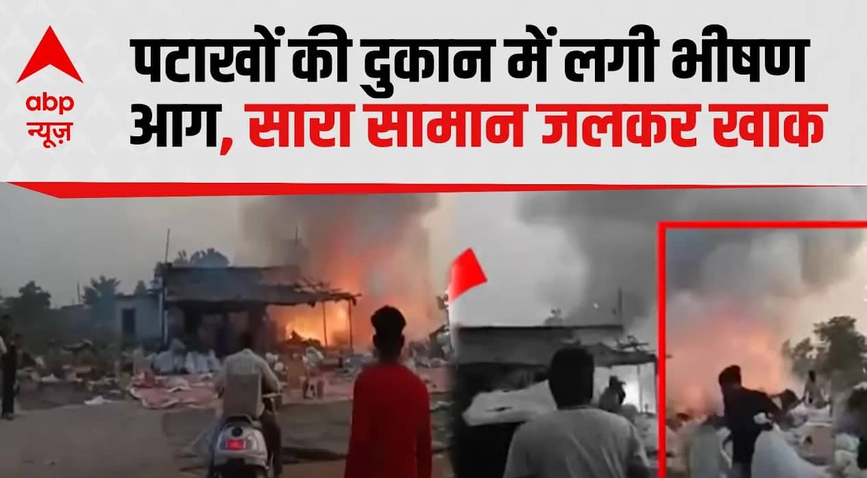 पटाखों की दुकान में लगी भीषण आग, सारा सामान जलकर खाक, लाखों का नुकसान |