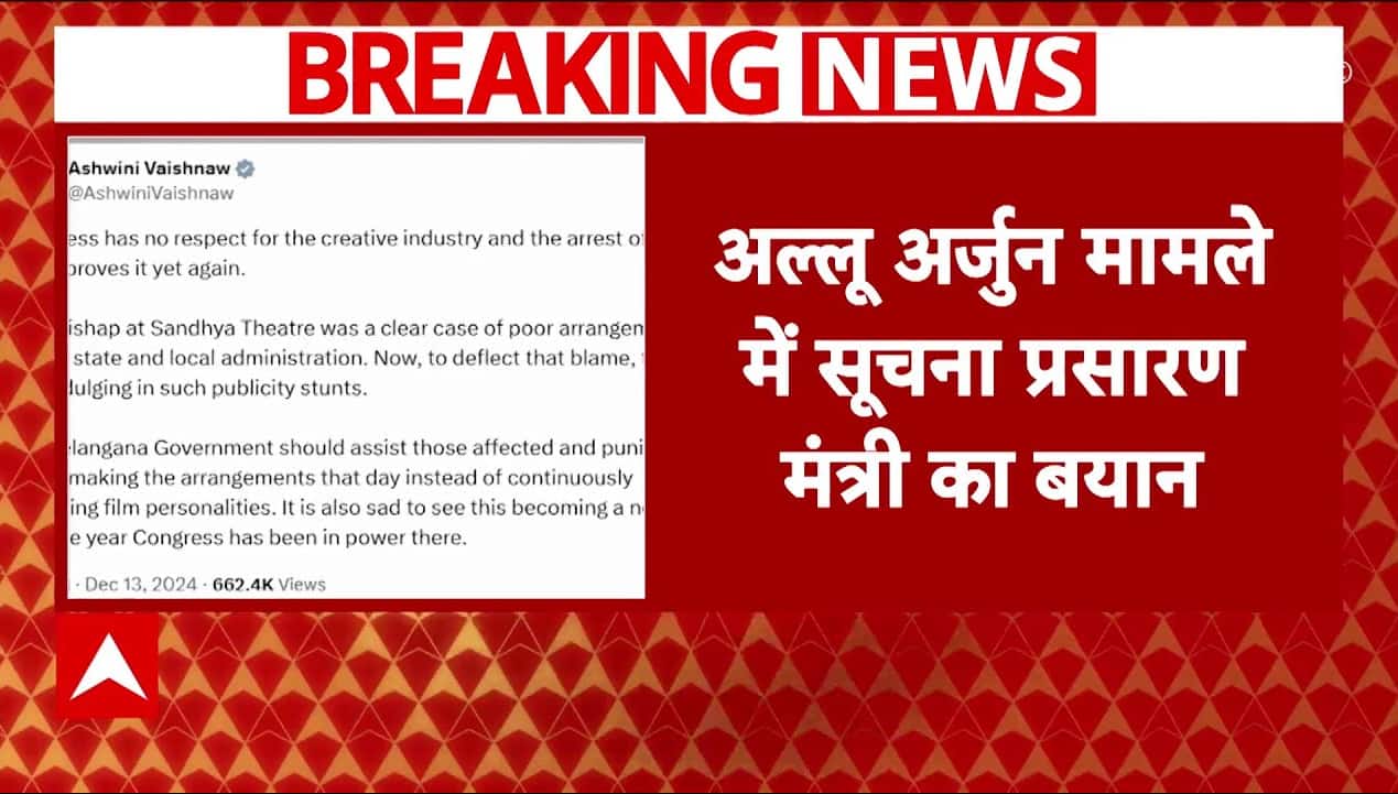 Allu Arjun Released From Jail : अल्लू अर्जुन मामले को लेकर केंद्रीय मंत्री अश्विनी वैष्णव का हमला
