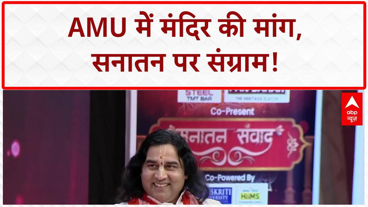 सनातन संवाद में अंतर्राष्ट्रीय कथावाचक देवकीनंदन ठाकुर जी महाराज ने सनातन धर्म से जुड़े वर्तमान विवादित परिदृश्य पर बात की। उन्होंने अलीगढ़ मुस्लिम विश्वविद्यालय (AMU) में मंदिर निर्माण की मांग को लेकर अपनी बात रखी। महाराज जी ने बताया कि 2019 से 2022 तक सरकार ने AMU को लगभग 5600 करोड़ रुपये का फंड दिया है। उन्होंने सवाल उठाया कि यदि इस विश्वविद्यालय में 22 से 24 मस्जिदें हैं और सरकार का पैसा लग रहा है, तो 45000 हिंदू बच्चों के लिए प्रार्थना करने हेतु एक मंदिर क्यों नहीं होना चाहिए। उन्होंने इसे हिंदू बच्चों का फंडामेंटल राइट बताया। महाराज जी ने सपा विधायक इंद्रजीत सरोज और रामजी लाल सुमन के बयानों पर भी प्रतिक्रिया दी। उन्होंने कहा कि 'बुद्ध भी हमारे हैं। राम भी हमारे हैं, कृष्ण भी हमारे हैं। ये भारत भी हमारा है और भारत की परंपरा भी हमारी है। भारत की परंपरा बिना बुद्ध और बिना राम के पूर्ण हो ही नहीं सकती है।' उन्होंने जोर दिया कि इस मुद्दे पर विवाद की नहीं, बल्कि संवाद की आवश्यकता है।
