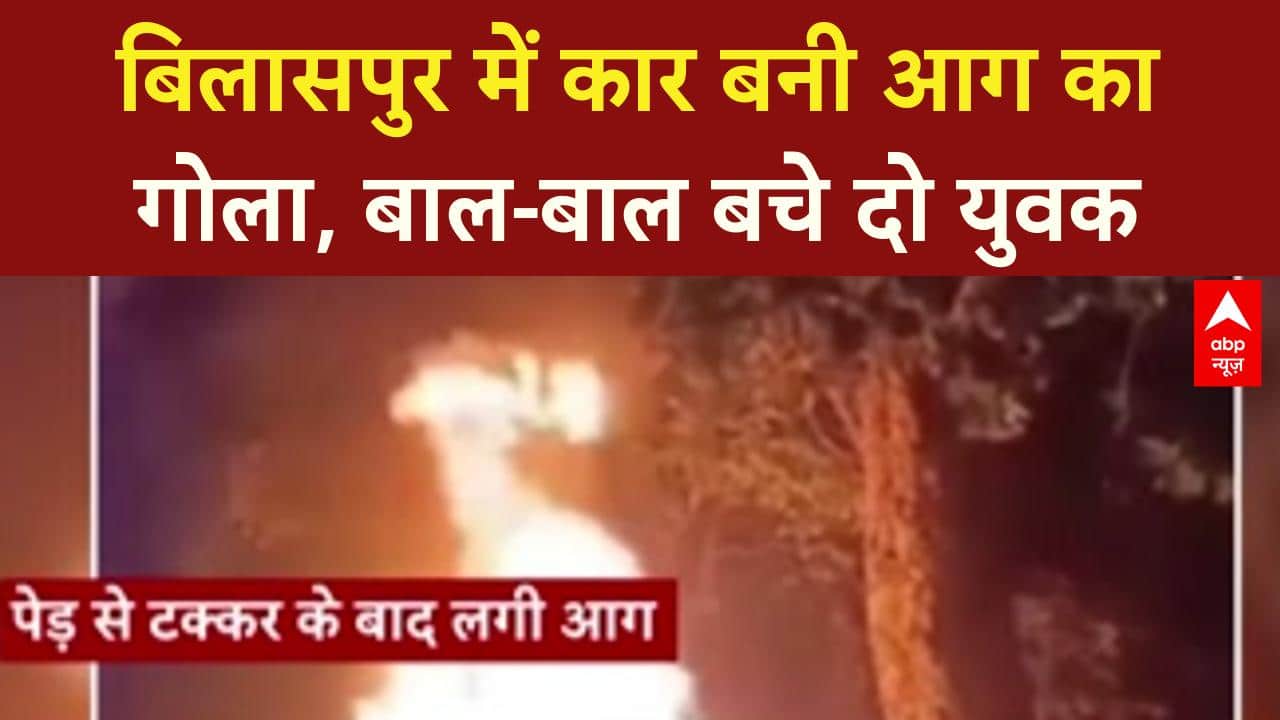 Car Accident: बिलासपुर में पेड़ से टकराई CAR, आग का गोला बनी, दो युवक SAFE