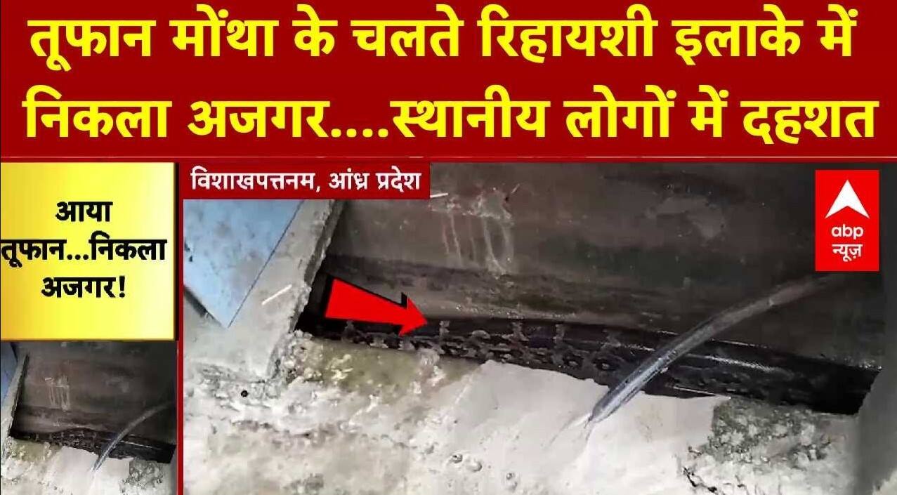 Cyclone Montha: तूफान मोंथा के चलते रिहायशी इलाकों में घुसा अजगर..स्थानीय लोगों में दहशत | ABP News
