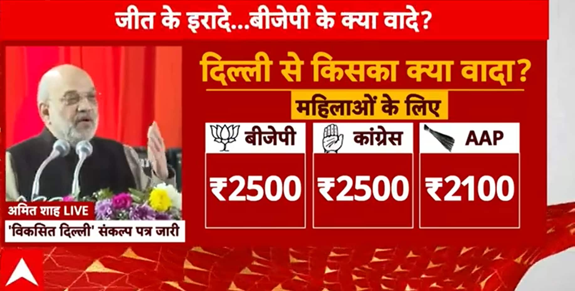 दिल्ली विधानसभा चुनाव को लेकर केंद्रीय गृहमंत्री अमित शाह ने शनिवार (25 जनवरी) को बीजेपी के संकल्प पत्र का तीसरा भाग जारी किया. इस दौरान उन्होंने कहा कि हम जो भी वादा करते हैं उसे पूरा करते हैं, दूसरों की तरह सिर्फ वादा नहीं करते हैं. इस दौरान अमित शाह ने कहा, "आज दिल्ली चुनाव के लिए बीजेपी संकल्प का अंतिम हिस्सा प्रस्तुत कर रहा हूं. अन्य पार्टी का नाम नहीं लूंगा. हमारा पार्टी जो वादे करती है पूरा करती है. हम सिर्फ वादे नहीं करते किसी से. हमने बहुत लोगों से सुझाव मांगा था जिसके बाद ये तैयार किया गया है. केजरीवाल जी दिल्ली के लोगों को से वादे करते है और फिर पूरा नहीं करते और फिर भोला सा चेहरा लेकर आ जाते हैं.|