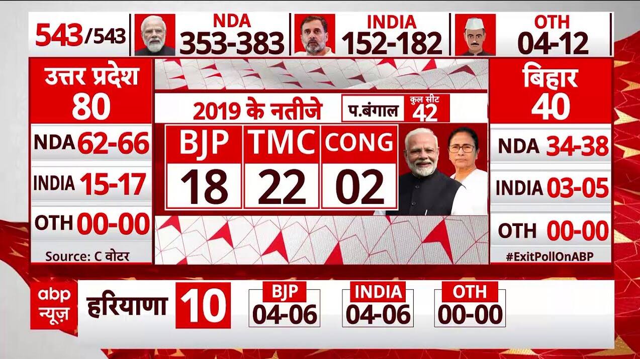 EXIT POLL 2024 : ABP के C-Voter Survey के एग्जिट पोल में NDA को बहुमत । abp news c voter survey