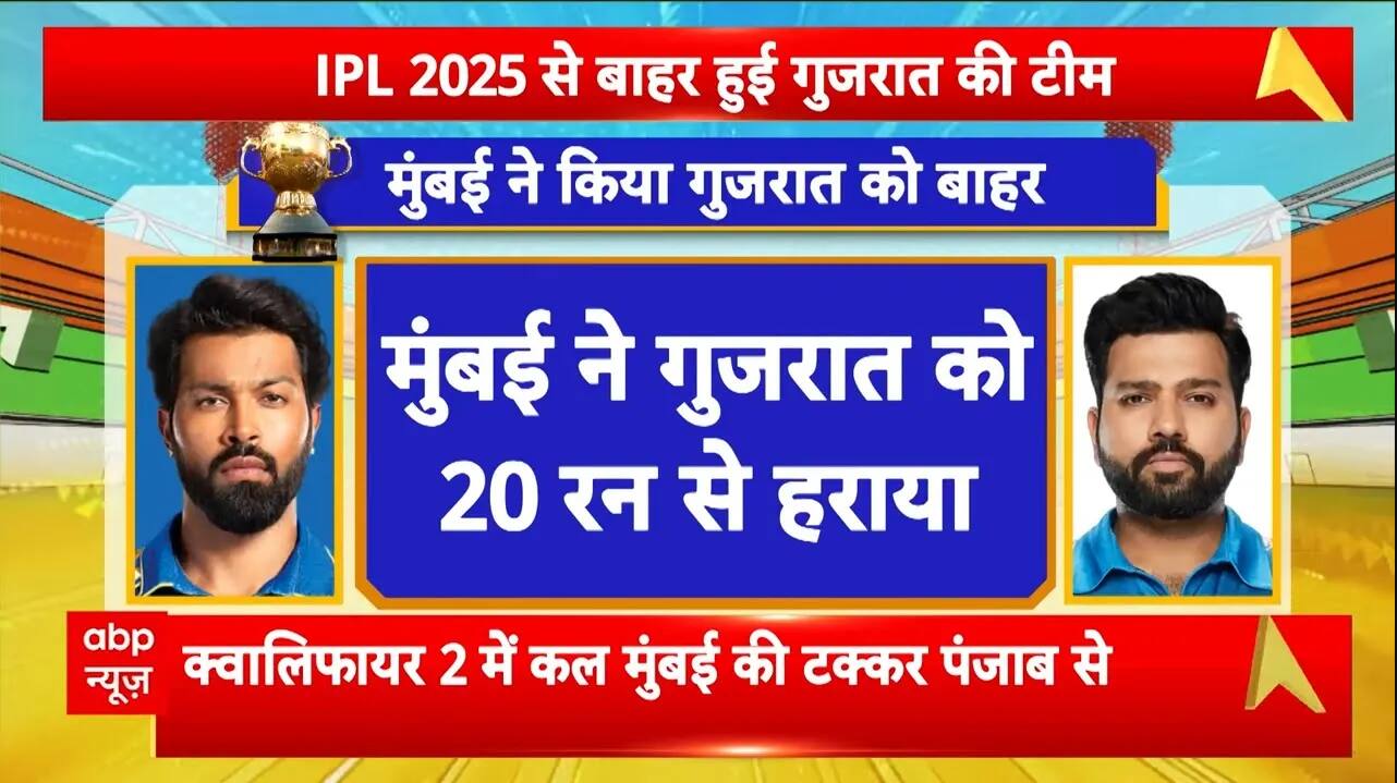 IPL 2025 से बाहर हुई Gujarat टीम, मुंबई ने गुजरात को 20 रन से हराया | Breaking | ABP News