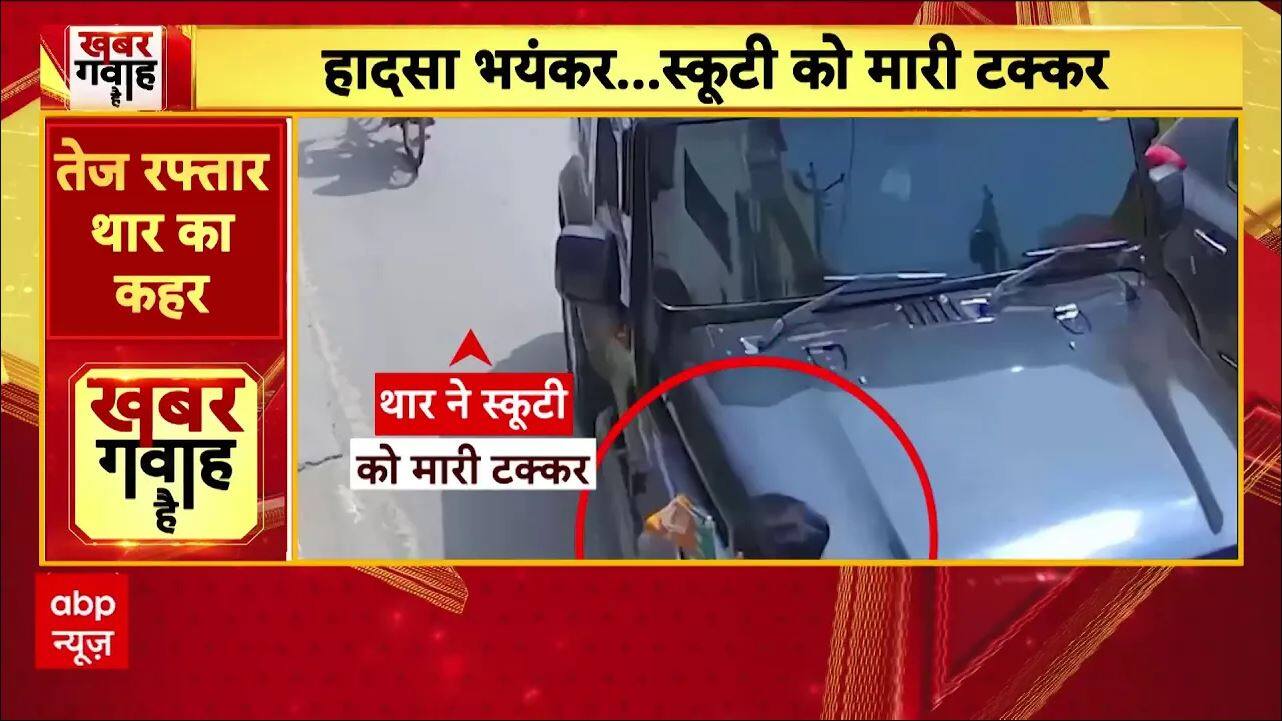 Haryana: तेज रफ्तार Thar ने मारी स्कूटी को टक्कर, सामने आया वीडियो | Thar पर BJP का झंडा लगा है