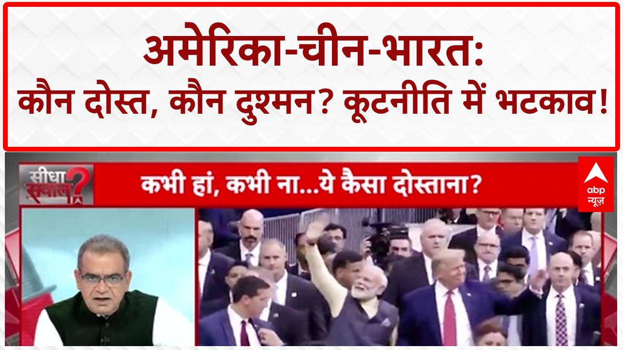 एबीपी न्यूज़ के कार्यक्रम 'सीधा सवाल' में संदीप चौधरी ने भारत की विदेश नीति, अमेरिका, चीन और रूस के साथ संबंधों, व्यापार घाटा, टैरिफ विवाद, और मीडिया की भूमिका पर चर्चा की. कार्यक्रम में बताया गया कि अमेरिका ने भारत पर 25% और 50% टैरिफ लगाया, जबकि चीन पर 30% टैरिफ लगाकर 90 दिन का विराम दिया. भारतीय विदेश मंत्रालय ने इन टैरिफ को अतार्किक बताया. भारत का चीन के साथ 8.5 लाख करोड़, रूस के साथ 5 लाख करोड़ का व्यापार घाटा है, जबकि अमेरिका के साथ 3.5 लाख करोड़ का व्यापार अधिशेष है. 'मेक इन इंडिया' के 11 साल बाद भी विनिर्माण क्षेत्र का योगदान घटा है. चर्चा में 'मल्टी-अलाइनमेंट', राष्ट्रीय हित, फार्मा और स्मार्टफोन पुर्जों में चीन पर निर्भरता, और विदेश नीति में यथार्थवादी दृष्टिकोण अपनाने की आवश्यकता पर बल दिया गया. डोनाल्ड ट्रंप और प्रधानमंत्री मोदी के संबंधों, गलवान और ऑपरेशन सिंदूर जैसी घटनाओं के बावजूद चीन से रिश्तों की बहाली, और अमेरिका से दोस्ताना रवैये के बीच भारत की सुरक्षा और सामरिक हितों पर चिंता व्यक्त की गई.