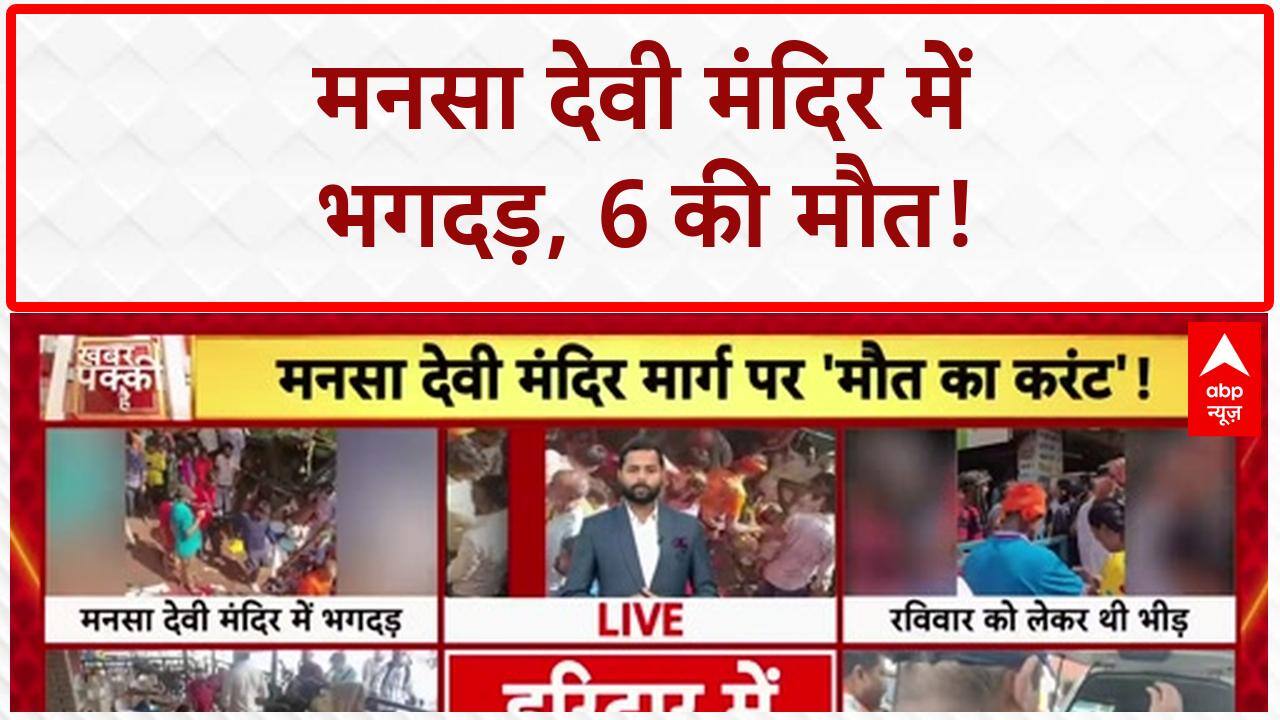 उत्तराखंड के हरिद्वार में मनसा देवी मंदिर में रविवार सुबह एक दुर्भाग्यपूर्ण घटना घटित हुई। मंदिर की सीढ़ियों के पास अफवाह फैलने से भगदड़ मच गई, जिसमें छह लोगों की जान चली गई और कई श्रद्धालु घायल हुए। घायलों को अस्पताल पहुंचाया गया है और उनका इलाज जारी है। उत्तराखंड के मुख्यमंत्री ने कहा कि "दोषियों के खिलाफ़ सख्त एक्शन होगा।" उन्होंने यह भी बताया कि अफवाह फैलने की वजह से हादसा हुआ। इस घटना की मजिस्ट्रियल जांच के आदेश दे दिए गए हैं। पुलिस और अधिकारियों के अनुसार, मंदिर मार्ग में सीढ़ियों पर करंट होने की अफवाह फैली, जिससे अफरा-तफरी मची और लोग भागने लगे। एक चश्मदीद ने शॉर्ट सर्किट और चिंगारी देखने की बात कही। प्रधानमंत्री नरेंद्र मोदी ने भी इस हादसे पर दुख जताया है। राहत और बचाव कार्य जारी है।