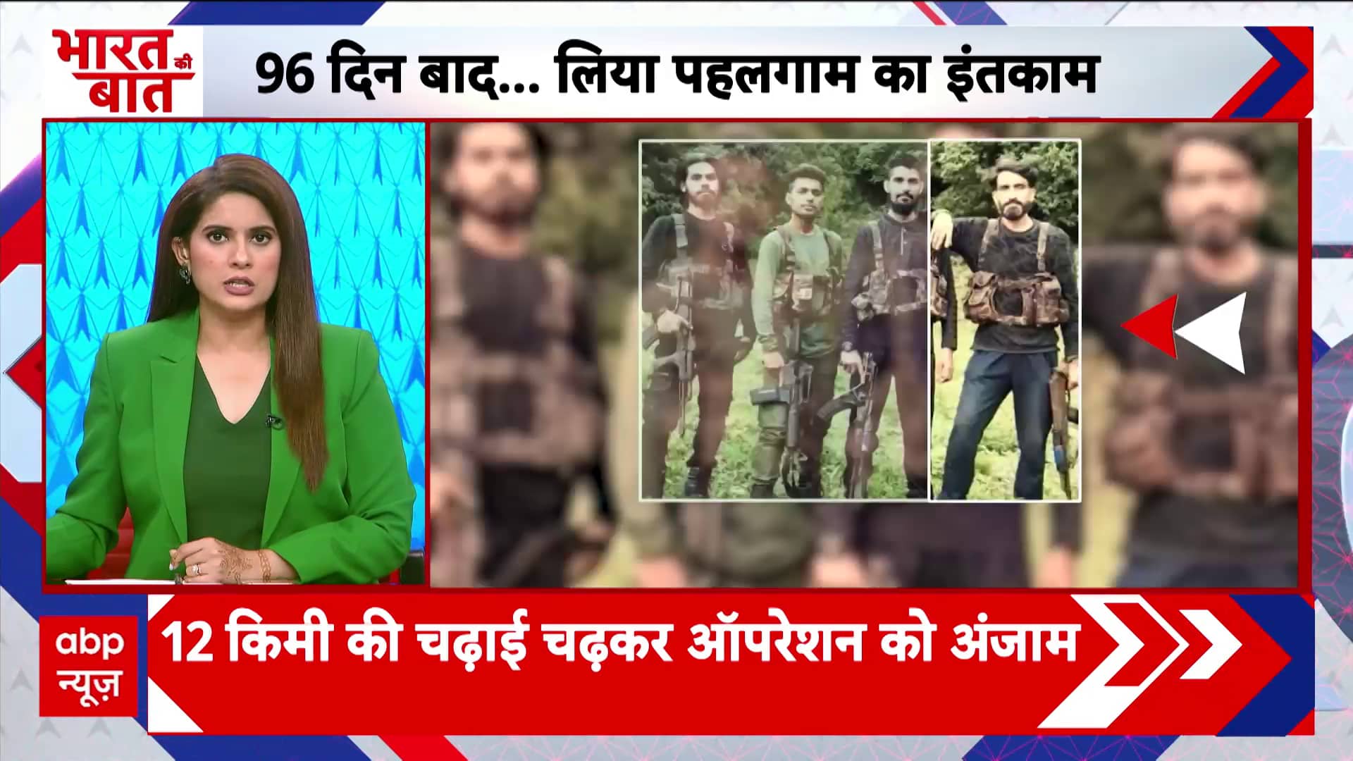 22 अप्रैल..जब हिंदुस्तान को आतंक ने सबसे गहरी चोट दी थी.. आज उस चोट पर मरहम लगने की खबर आई जब 48 घंटे लंबे ऑपरेशन में पहलगाम अटैक में शामिल आतंकवादियों को मौत के घाट उतार दिया गया...आपकी स्क्रीन पर मौजूद ये वो चार आतंकवादी हैं जो पहलगाम हमले में शामिल थे। इसमें से पहले आतंकवादी का नाम सुलेमान है जिसे गोलियों से भूना जा चुका है। दूसरे नंबर पर हथियार के साथ खड़ा है यासिर... उसे भी सुरक्षाबलों ने मौत के घाट उतार दिया है और तीसरा आतंकवादी जुनैद पहले ही मारा जा चुका था जबकि पहलगाम हमले के मुख्य आरोपी और तस्वीर में मौजूद चौथे आतंकी हाशिम मूसा के बारे में पुख्ता जानकारी नहीं मिली है। इन आतंकवादियों के पास से भारी मात्रा में हथियार भी बरामद किए गए हैं। इस पूरे ऑपरेशन को श्रीनगर की डल झील से करीब 20 किलोमीटर दूर महादेव पहाड़ी पर अंजाम दिया गया है। और इसे नाम दिया गया था ऑपरेशन महादेव।
