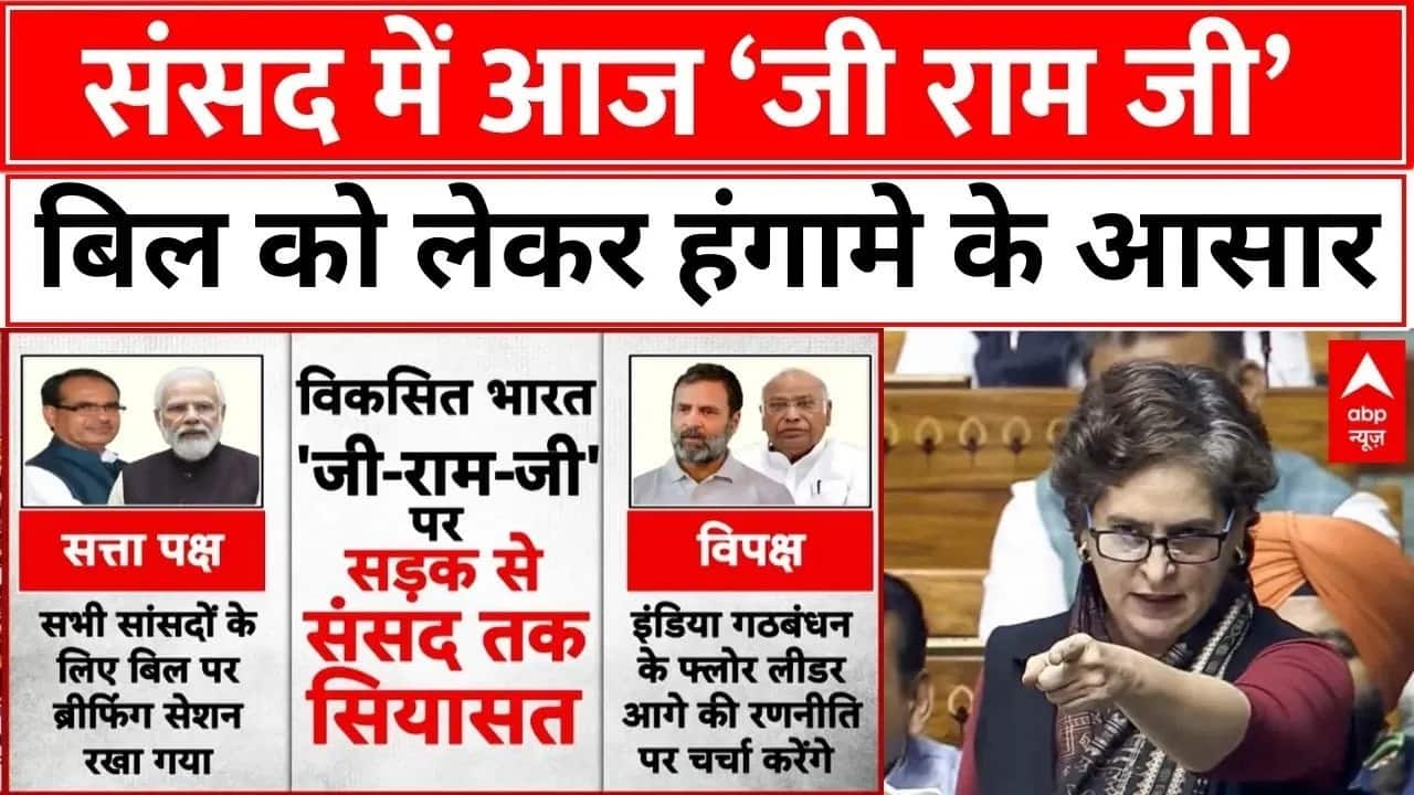 मनरेगा की जगह लाए गए वीबी-जी राम जी बिल पर आज लोकसभा में होगी चर्चा होगी...सदन में आज विधेयक पास कराने की होगी कोशिश...सरकार ने सुबह 9.30 बजे से साढ़े 10 बजे तक सांसदों के लिए रखा ब्रीफिंग सेशन...