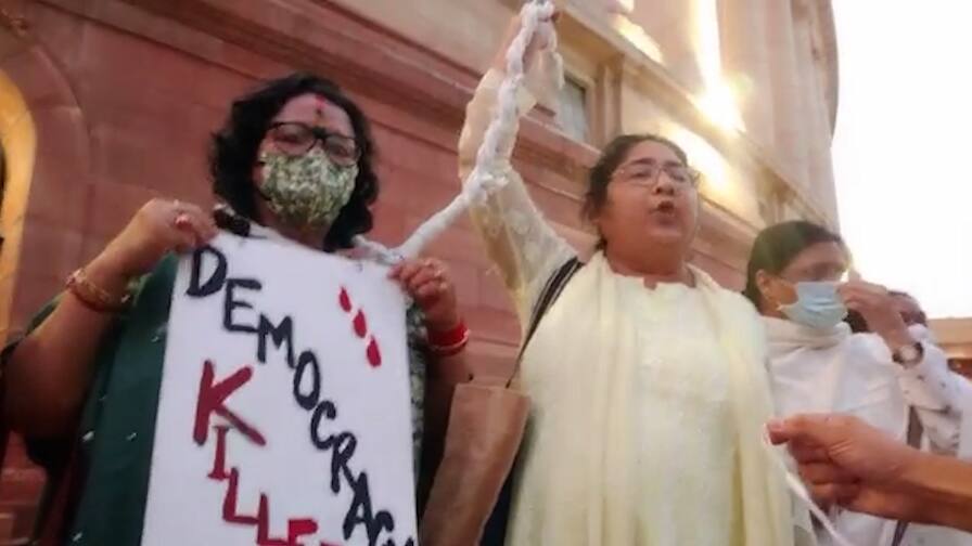 शोरगुल के बीच मानसून सत्र का आज आखिरी दिन था और यह सारा सत्र गतिरोध में ही धूल गया. इन सबके बीच टीएमसी के सांसद फांसी का फंदा लेकर प्रदर्शन करने पहुंचे. जानिये क्या बनी वजह.