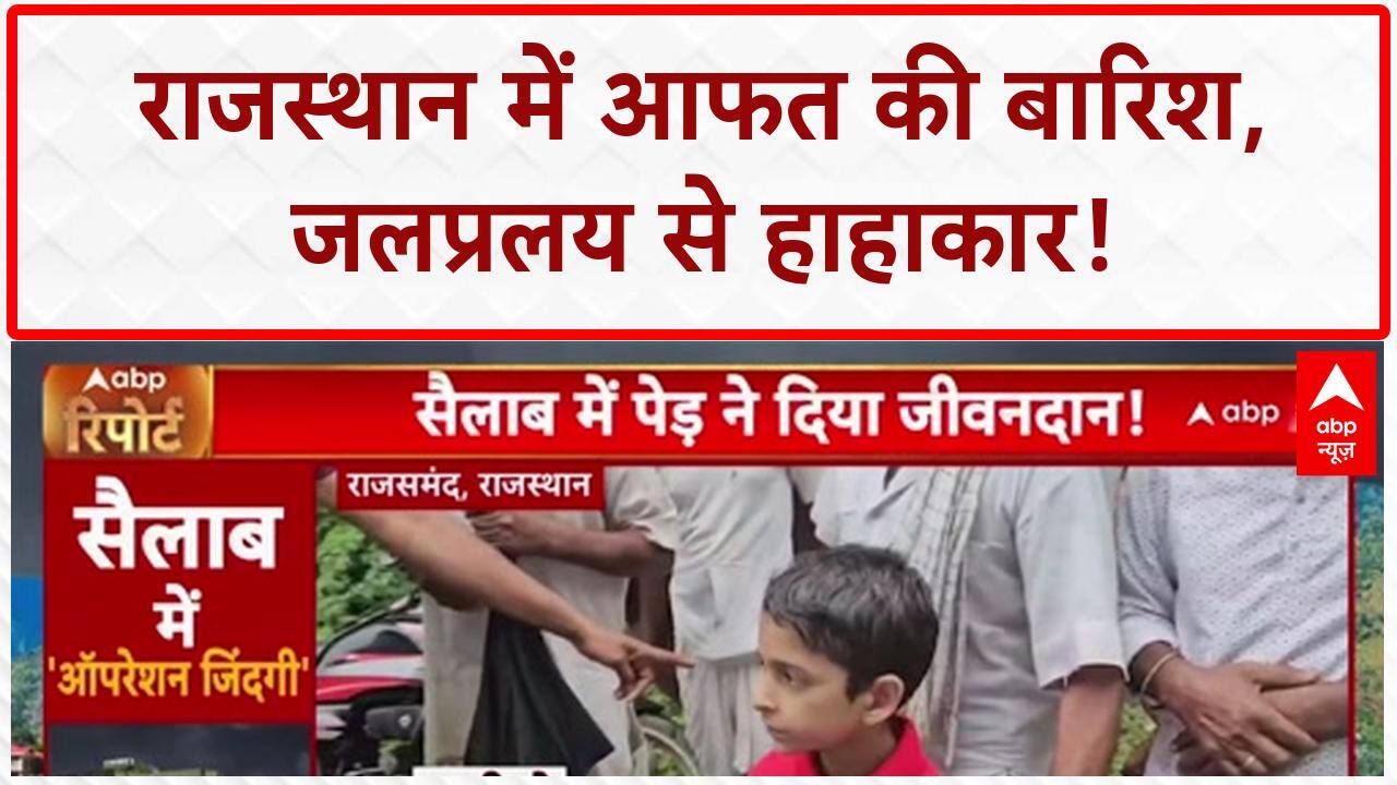 देश के आधे से अधिक राज्यों में बरसात ने लोगों की मुसीबतें बढ़ा दी हैं। राजस्थान के राजसमंद जिले में बाढ़ का ऐसा पानी आया कि सड़क नदी में बदल गई। पानी के तेज बहाव में स्कूली बच्चों से भरी एक वैन फंस गई। कुछ लोग पेड़ से लटककर अपनी जान बचा रहे थे, जबकि छह लोग, जिनमें तीन बच्चे थे, गाड़ी के अंदर फंसे थे। एनडीआरएफ और पुलिस ने बुलडोजर की मदद से सभी को सुरक्षित बाहर निकाला। बच्चे बचाव के बाद भी सहमे हुए थे। अजमेर में भी भारी बारिश से सड़कों पर पानी का बहाव तेज हो गया। लोग सड़क पर गिरते जा रहे थे, बाइक और कारें पानी में बह गईं। एक कार को क्रेन से निकाला गया। शहर का ड्रेनेज सिस्टम फेल हो गया और नाले की दीवार गिर गई। एक व्यक्ति वीडियो बना रहा था, तभी नाले की दीवार गिरी और एक महिला वहां से गुजर रही थी, जिसे 'आंटी जाओ और आके जाओ आ गए और आंटी आंटी आके जाओ' कहकर भागने को कहा गया। वह किस्मत से बच गई। अजमेर में दिन में भी पानी का बहाव इतना तेज था कि दरगाह जाने वालों को रस्सियों के सहारे सड़क पार करनी पड़ी। ड्रोन वीडियो में शहर के बड़े हिस्से में बाढ़ जैसे हालात दिखे।