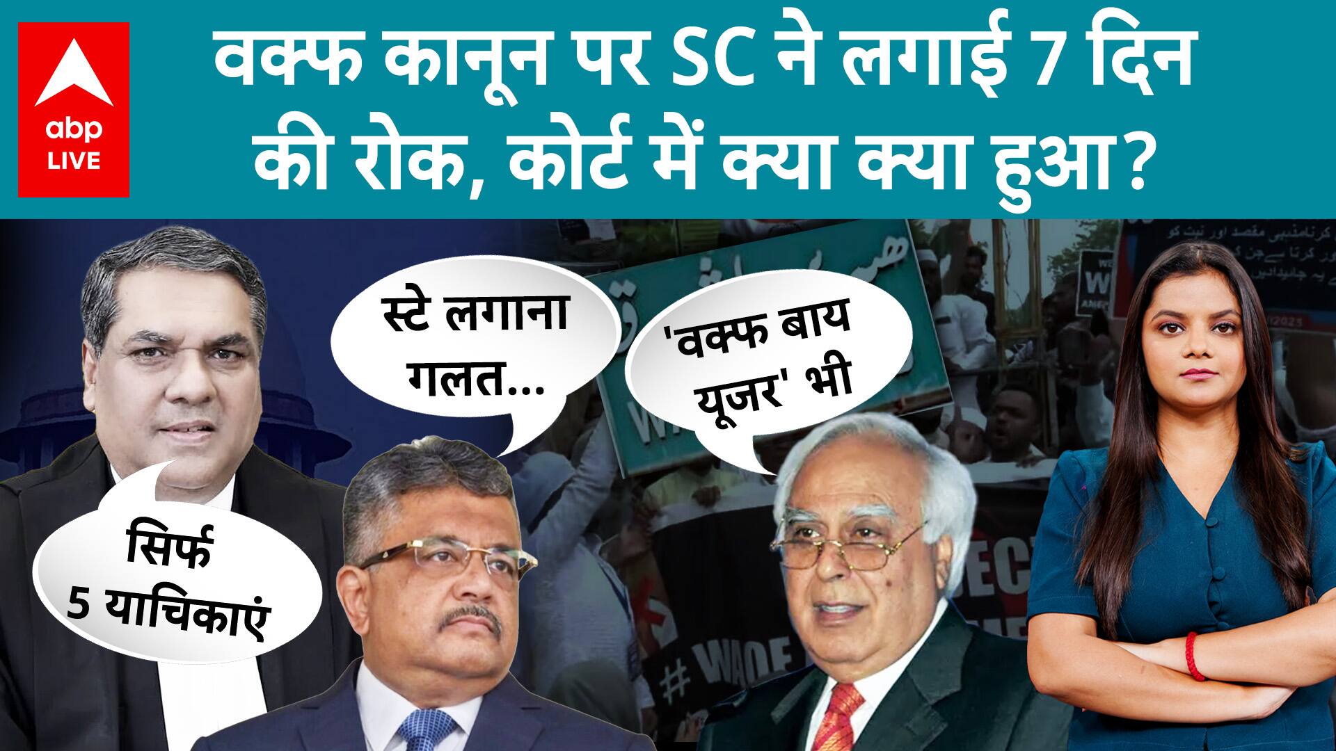 SC on Waqf Law: वक्फ कानून पर SC ने लगाई 7 दिन की रोक, कोर्ट में क्या क्या हुआ? |ABP LIVE