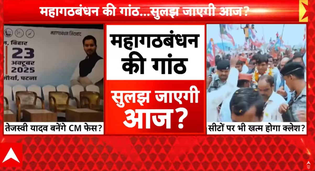 बिहार में महागठबंधन की खींचतान आज खत्म होने की संभावना है। पटना में सुबह 11:00 बजे महागठबंधन की प्रेस कॉन्फ़्रेंस आयोजित की जाएगी, जिसमें सभी दलों के नेता शामिल होंगे। बुधवार को अशोक गहलोत ने तेजस्वी यादव और लालू प्रसाद यादव से मुलाकात की थी। सीटों को लेकर चल रही लंबी बहस और मतभेदों के बाद यह प्रेस कॉन्फ़्रेंस गठबंधन की स्थिति स्पष्ट करने और रणनीति तय करने के लिहाज से अहम मानी जा रही है। सभी की निगाहें इस अहम प्रेस कॉन्फ़्रेंस पर टिकी हुई हैं। बिहार में महागठबंधन की खींचतान आज खत्म होने की संभावना है। पटना में सुबह 11:00 बजे महागठबंधन की प्रेस कॉन्फ़्रेंस आयोजित की जाएगी, जिसमें सभी दलों के नेता शामिल होंगे। बुधवार को अशोक गहलोत ने तेजस्वी यादव और लालू प्रसाद यादव से मुलाकात की थी। सीटों को लेकर चल रही लंबी बहस और मतभेदों के बाद यह प्रेस कॉन्फ़्रेंस गठबंधन की स्थिति स्पष्ट करने और रणनीति तय करने के लिहाज से अहम मानी जा रही है। सभी की निगाहें इस अहम प्रेस कॉन्फ़्रेंस पर टिकी हुई हैं। बिहार में महागठबंधन की खींचतान आज खत्म होने की संभावना है। पटना में सुबह 11:00 बजे महागठबंधन की प्रेस कॉन्फ़्रेंस आयोजित की जाएगी, जिसमें सभी दलों के नेता शामिल होंगे। बुधवार को अशोक गहलोत ने तेजस्वी यादव और लालू प्रसाद यादव से मुलाकात की थी। सीटों को लेकर चल रही लंबी बहस और मतभेदों के बाद यह प्रेस कॉन्फ़्रेंस गठबंधन की स्थिति स्पष्ट करने और रणनीति तय करने के लिहाज से अहम मानी जा रही है। सभी की निगाहें इस अहम प्रेस कॉन्फ़्रेंस पर टिकी हुई हैं। बिहार में महागठबंधन की खींचतान आज खत्म होने की संभावना है। पटना में सुबह 11:00 बजे महागठबंधन की प्रेस कॉन्फ़्रेंस आयोजित की जाएगी, जिसमें सभी दलों के नेता शामिल होंगे। बुधवार को अशोक गहलोत ने तेजस्वी यादव और लालू प्रसाद यादव से मुलाकात की थी। सीटों को लेकर चल रही लंबी बहस और मतभेदों के बाद यह प्रेस कॉन्फ़्रेंस गठबंधन की स्थिति स्पष्ट करने और रणनीति तय करने के लिहाज से अहम मानी जा रही है। सभी की निगाहें इस अहम प्रेस कॉन्फ़्रेंस पर टिकी हुई हैं।