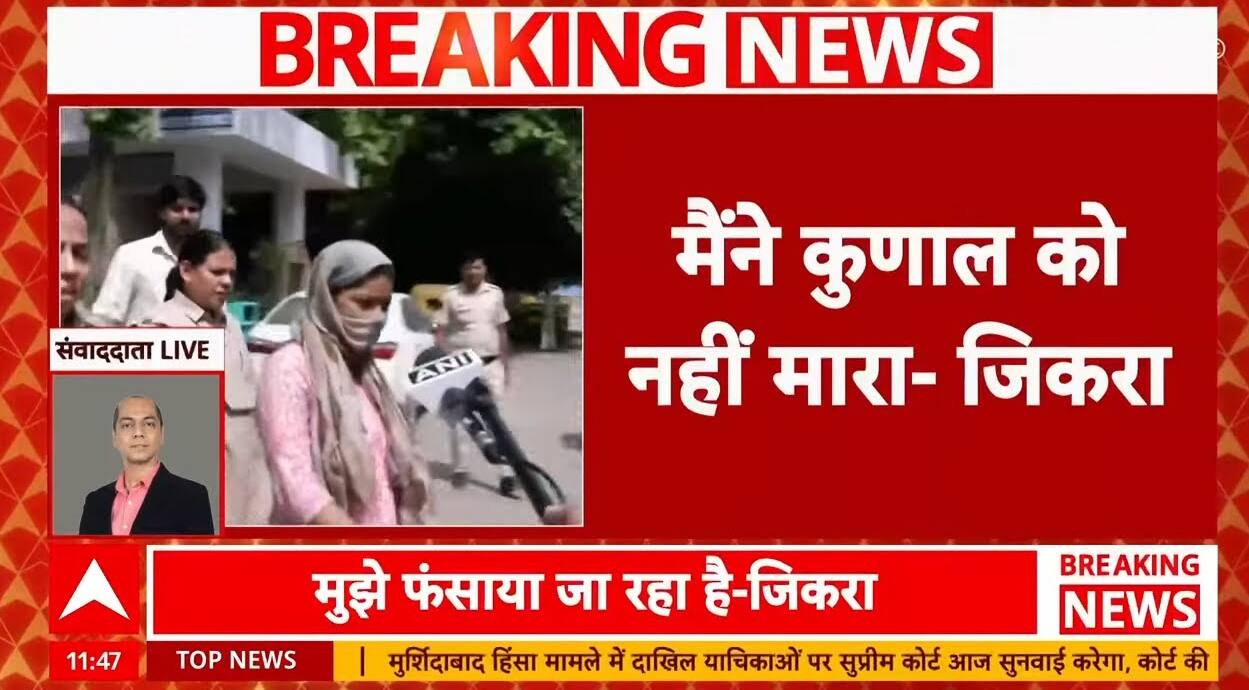 कुणाल मर्डर केस में फिर सामने आया लेडी डॉन जिकरा का बयान. जिसमे जिकरा ने बोला है की 'मैंने कुणाल को नहीं मारा.दिल्ली के सीलमपुर में हुए हत्याकांड की मास्टरमाइंड. जिकरा को पुलिस ने गिरफ्तार कर लिया है। कोर्ट ने जिकरा को दो दिन की पुलिस रिमांड पर भेजा है। हत्या में इस्तेमाल हथियार अभी तक बरामद नहीं हुआ है और अन्य आरोपियों की तलाश जारी है। जिकरा आर्म्स एक्ट के मामले में जेल में बंद थी और 15 दिन पहले ही रिहा हुई थी। पुलिस इस मामले की जांच कर रही है और जल्द ही अन्य आरोपियों को भी गिरफ्तार करने की कोशिश कर रही है आपको बता दे की सीलमपुर के जे ब्लॉक में 17 वर्षीय कुणाल की चाकू से हत्या कर दी गई। पुलिस ने इस मांमले की 'लेडी डॉन' जिकरा को गिरफ्तार किया है, लेकिन मुख्य आरोपी साहिल अभी भी फरार है। परिवार न्याय की मांग कर रहा है।