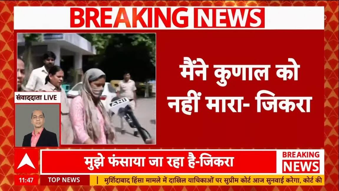 दिल्ली के सीलमपुर इलाके में हुए कुणाल हत्याकांड मामले में आरोपी लेडी डॉन जिकरा ने कहा है कि उसने कुणाल को नहीं मारा और उसे गलत तरीके से फंसाया जा रहा है। पुलिस हिरासत में मेडिकल के लिए ले जाए जाते समय जिकरा ने यह बयान दिया, 'सर मैंने नहीं मारा, मुझे फंसाया जा रहा है।' 17 साल के कुणाल की हत्या के आरोप में जिकरा और उसके भाई साहिल को पुलिस ने गिरफ्तार किया था; वे रिमांड पर थे और आज उनकी कोर्ट में पेशी होनी है। पुलिस मामले में सबूत जुटा रही है और जिकरा की और कस्टडी की मांग कर सकती है।