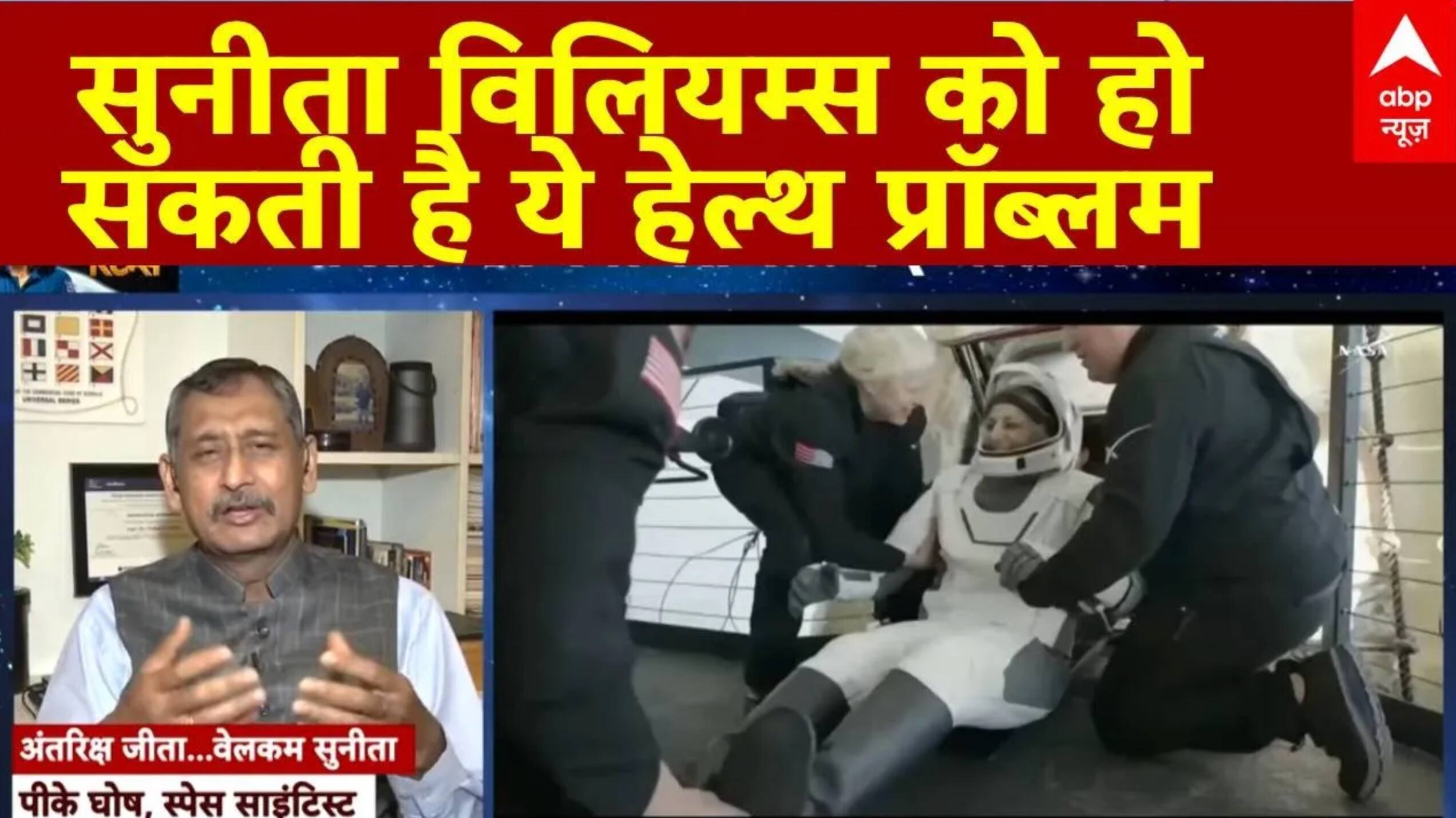 Sunita Williams Return Updates : कितना मुश्किल है अंतरिक्ष में रुकना? एक्सपर्ट्स को सुनिए | NASA अंतरिक्ष से सुनीता विलियम्स की धरती पर सकुशल वापसी की गुड न्यूज़ आ गई है.अंतरिक्ष से सुनीता का वापसी का मिशन सफल.सुनीता विलियम्स धरती पर वापस आईं.स्पेस स्टेशन से सकुशल वापस लौटीं.स्पेसएक्स के ड्रैगन यान की सफल लैंडिंग. 9 महीने बाद धरती पर लौटीं सुनीता. फ्लोरिडा में ड्रैगन यान की सफल लैंडिंग भारतीय मूल की सुनीता विलियम्स 9 महीने बाद धरती पर लौट आई हैं...सुनीता विलियम्स के साथ अमेरिकी एस्ट्रोनॉट बुच विल्मोर, निक हेग और रूस के एस्ट्रोनॉट अलेक्सांद्र गोर्बुनोव भी सकुशल धरती पर लौट आए हैं....स्पेस एक्स का ड्रैगन कैप्सूल इंटरनेशनल स्पेस स्टेशन से सभी को वापस धरती पर ले आया है...ये वो तस्वीरें हैं, जिनका पूरी दुनिया को इंतजार था...और आज वो इंतजार खत्म हो गया है...पूरी दुनिया इस मिशन की सफलता के लिए दुआ कर रही थी...वो सारी दुआएं और वैज्ञानिकों की मेहनत रंग लाईं...और सुनीता विलियम्स समेत चार एस्ट्रोनॉट्स सही सलामत धरती पर वापस आ गए हैं. सुनीता विलियम्स पिछले साल 5 जून को इंटरनेशनल स्पेस स्टेशन पहुंची थीं...सिर्फ 8 दिन के मिशन पर...लेकिन उन्हें लेकर बोइंग का जो स्टारलाइनर स्पेसक्राफ्ट गया था, उसमें अचानक तकनीकी खराबी आ गई थी...जिसके चलते उनकी वापसी टल गई थी...और तब से यानी पिछले साल जून से सुनीता विलियम्स इंटरनेशनल स्पेस स्टेशन में थीं...287 दिन तक वहां फंसी रहीं..और आज उन्हें स्पेसएक्स के ड्रैगन यान के जरिए सही सलामत वापस धरती पर ले आया गया है