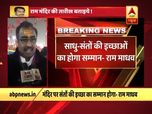 बीजेपी महासचिव राम माधव का कुंभ में बड़ा बयान, कहा राम मंदिर निर्माण को लेकर संतों की इच्छा का होगा सम्मान