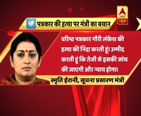 पत्रकार गौरी लंंकेश की हत्या की सूचना प्रसारण मंत्री स्मृति ईरानी ने निंदा की