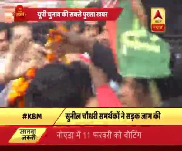 नोएडा: एसपी उम्मीदवार सुनील चौधरी के समर्थकों ने किया सड़क जाम, आम लोगों को हुई परेशानी