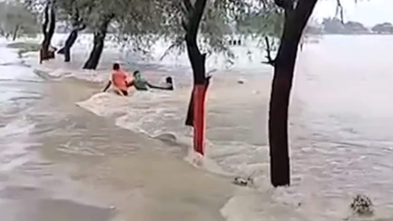 UP Flood: Balrampur में तेज बहाव में फंसे युवक को किया Rescue