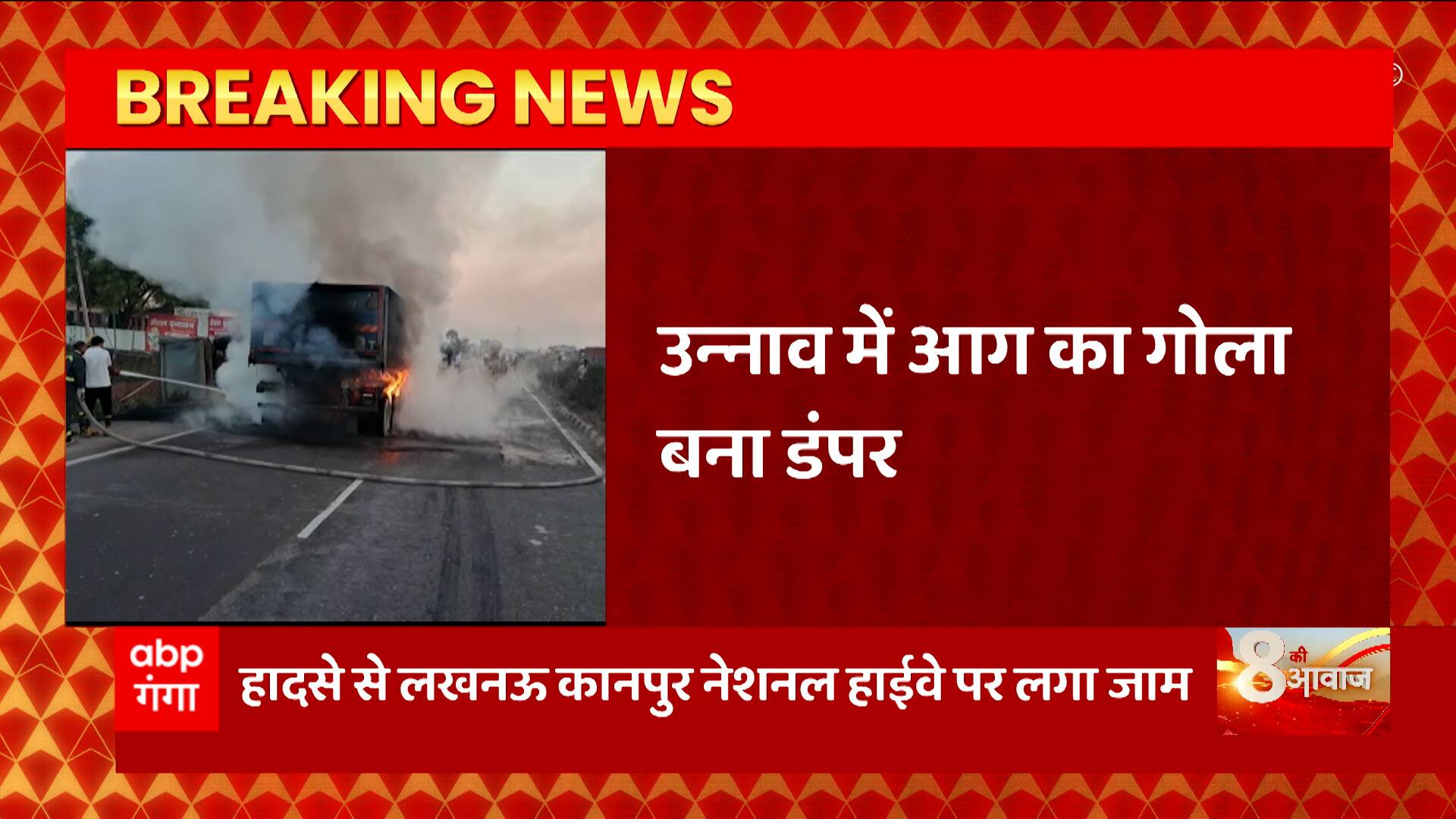 उन्नाव में आग का गोला बना डंपर, ड्राइवर और क्लीनर हुए घायल, हाईवे पर लगा लंबा जाम