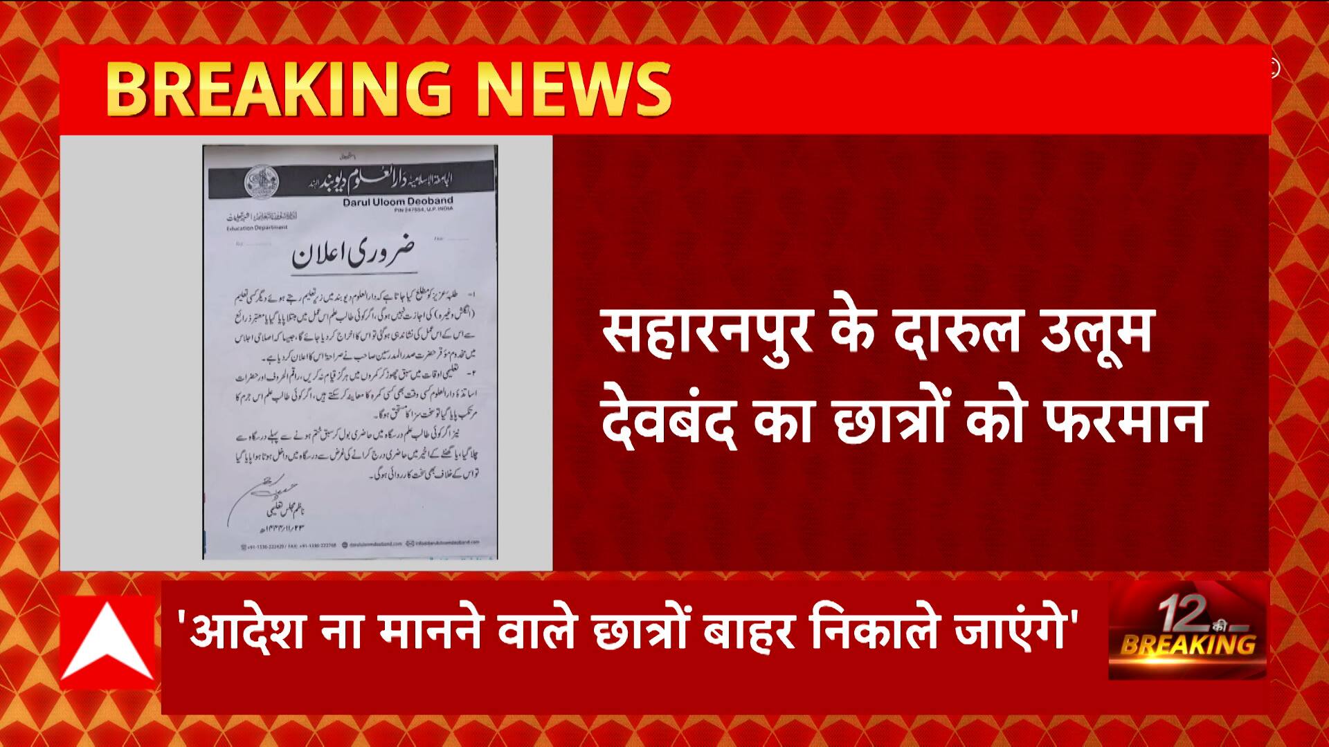 Saharanpur : 'पहले बने आलिम, बाद में बने डॉक्टर और इंजीनियर'- दारुल उलूम देवबंद का छात्रों को फरमान... देखिए पूरी रिपोर्ट
