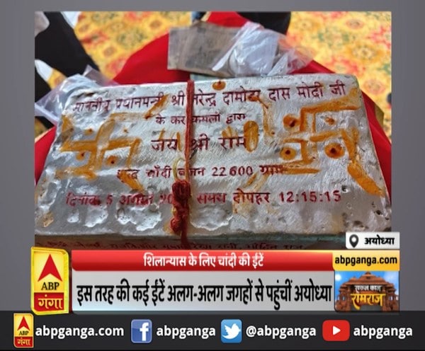 5 अगस्त को पीएम मोदी आने वाले हैं.. इसके लिए प्रधानमंत्री का नाम लिखी चांदी की ईंटें भी अयोध्या पहुंचने लगी हैं.. इन ईंटों पर मुहूर्त की टाइमलाइन दर्ज है.. ईंट पर 5 अगस्त 2020 के साथ साथ समय 12 बजकर 15 मिनट और 15 सेकंड शुभ मुहूर्त लिखा गया है.. बताया जाता है कि इन्हीं ईंटों से पीएम मोदी विधिवत शिलान्यास करेंगे.. श्री राम जन्मभूमि तीर्थ क्षेत्र ट्रस्ट के अध्यक्ष के उत्तराधिकारी और राम जन्मभूमि न्यास के सदस्य कमल नयन दास ने बताया कि इस तरह की कई चांदी की ईंट दिल्ली समेत अलग-अलग स्थानों से आई हैं.. अब ये प्रधानमंत्री के ऊपर है कि वो चांदी की ईंट से शिलान्यास करते हैं कि पत्थर की शिला या किसी और ईंट से.. लेकिन इन सब ईंटो पर दिनांक 5 अगस्त 2020.. समय 12 बजकर 15 मिनट और 15 सेकंड शुभ मुहूर्त अंकित है.. साथ ही इसे भेजने वाले का अलग अलग नाम भी दर्ज है..