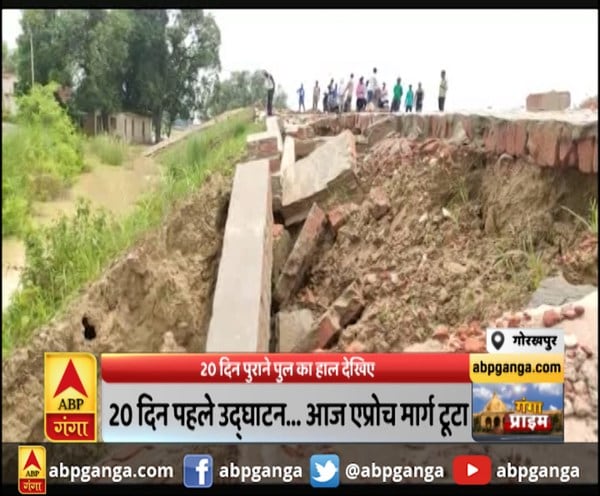 गोरखपुर : 20 दिन पहले उद्घाटन... आज एप्रोच मार्ग टूटा