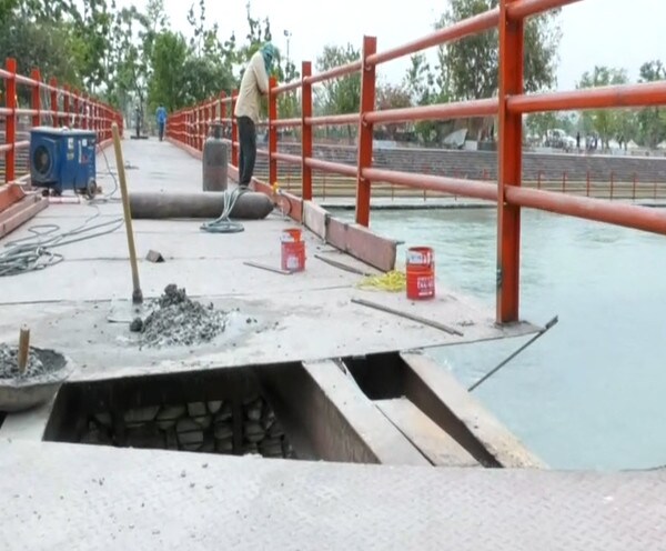 हरिद्वार में हो रहे महाकुंभ के कार्यों की गुणवत्ता को लेकर हाई कोर्ट पहले ही सवाल खड़े कर चुका है और हाईकोर्ट की टीम में कुंभ के कामों की गुणवत्ता को लेकर निरीक्षण भी गया. बावजूद इसके मेला प्रशासन और PWD की लापरवाही देखने को मिली है. जिसकी वजह से कुंभ के लिए तैयार हुआ अस्थाई पुल का पिलर धंस गया. गनीमत रही कि अभी कुंभ का आयोजन शुरू नहीं हुआ है और पुल पर आवाजाही नाम मात्र के बराबर है. आनन-फानन में पुल की मरम्मत का काम शुरू कर दिया है, लेकिन सवाल यह खड़ा होता है कि मेला प्रशासन और पीडब्ल्यूडी का इस ओर पहले ही ध्यान क्यों नहीं गया. आपको बता दें कि ये पुल खड़खड़ी श्मशान घाट को चमगादड़ टापू से जोड़ता है, जिस पर कुंभ के दौरान बड़ी संख्या में लोगों की आवाजाही होती है. हालांकि, पुल को अब ठीक किया जा रहा है लेकिन पिलर अभी भी तिरछा ही है.