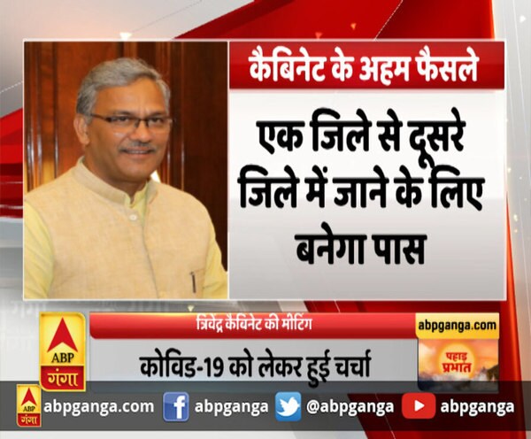 देहरादून में हुई त्रिवेंद्र कैबिनेट की मीटिंग में कई अहम फैसले लिए गए। मीटिंग में कोविड-19 को लेकर क्षेत्रों के बंटवारे समेत 16 विषयों पर चर्चा हुई। मीटिंग में स्वास्थ्य सुविधाओं को बेहतर बनाने के लिए भी मुख्यमंत्री त्रिवेंद्र सिंह रावत ने अधिकारियों को निर्देश दिए। इसके साथ ही ये फैसला भी लिया गया कि अब राज्य में एक जिले से दूसरे जिले में जाने के लिए पास के अप्रुवल की जरुरत नहीं पड़ेगी।