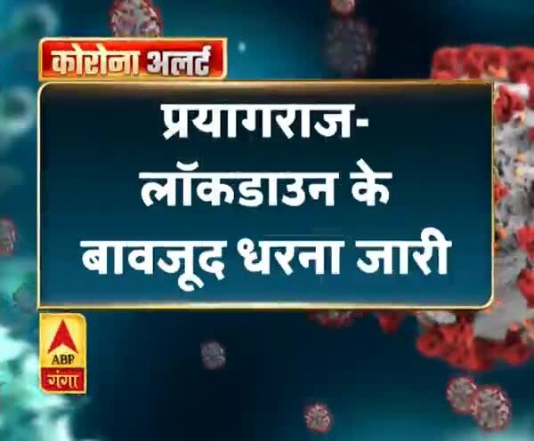 प्रयागराज- लॉकडाउन के बावजूद धरना जारी