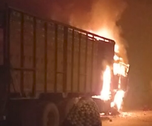 देखिए कैसे चलता ट्रक बन गया आग का गोला