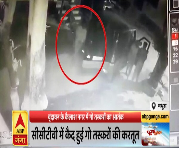 मथुरा में गो तस्करों का आतंक देखने को मिला है. यहां गो तस्करों को स्कॉर्पियो गाड़ी में गाय को जबरन ले जाते देखा गया. ये पूरा मामला सीसीटीवी में कैद हो गया है. इस दौरान स्थानीय लोगों ने पुलिस को सूचना दी. जिसके बाद पुलिस की गाड़ी आता देख तस्कर फरार हो गए. पुलिस ने स्कॉर्पियो और गाय को कब्जे में ले लिया है.