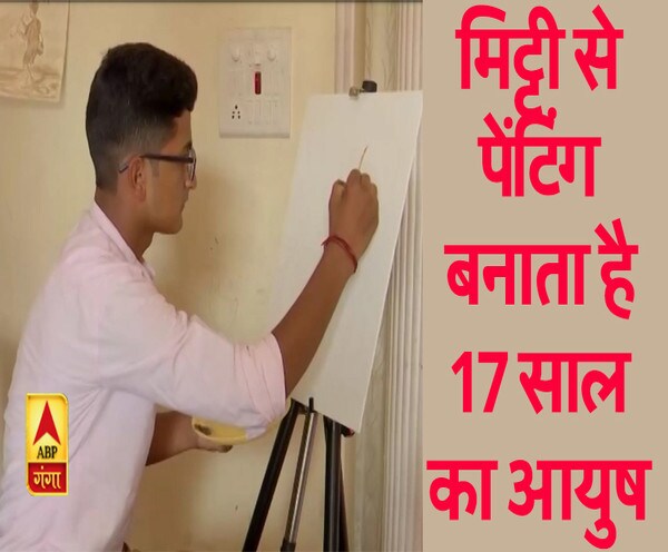 मिट्टी से पेंटिंग बनाता है 17 साल का आयुष